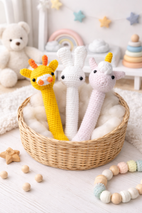 What makes this pattern especially delightful is the variety of characters you can create. From the gentle bunny with its long, soft ears, to the cheerful giraffe with its tiny horns and sweet little snout, and even the magical unicorn with its delicate horn and flowing mane each one has its own personality. As shown throughout the pattern pages, these small details are added carefully, bringing each toy to life in the most charming way.