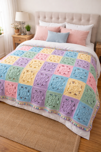 My dear, this blanket is a celebration of color, texture, and patience. Each motif tells its own little story, and together they create something truly special.
