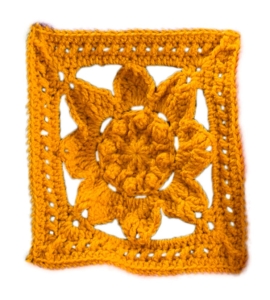 At the heart of this blanket are the richly textured motifs, each one worked in the round and layered with beautiful stitches. From the very center, where the stitches form a soft circular base, the design begins to grow outward with delicate details, popcorn stitches that create a raised, floral-like texture, and post stitches that add depth and dimension. These elements give each square a unique personality, almost like tiny works of art made stitch by stitch.